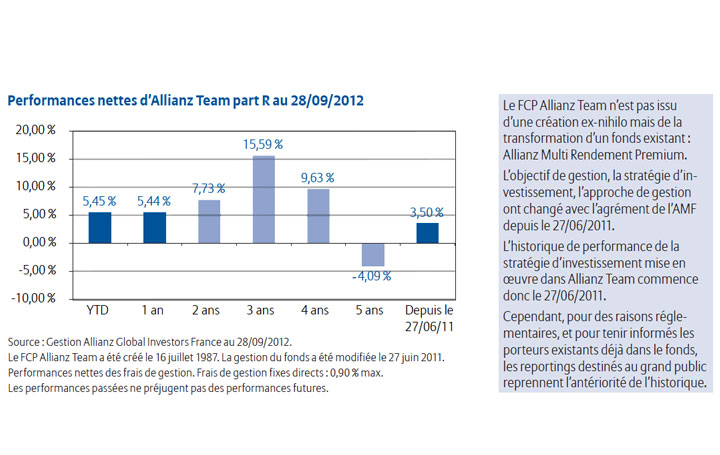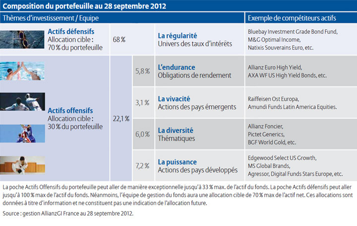 – des fonds en compétition permanente pour conserver leur place. Parce qu’une société de gestion ne peut être la meilleure dans tous les domaines Allianz Team est gérée selon une approche de multigestion.
